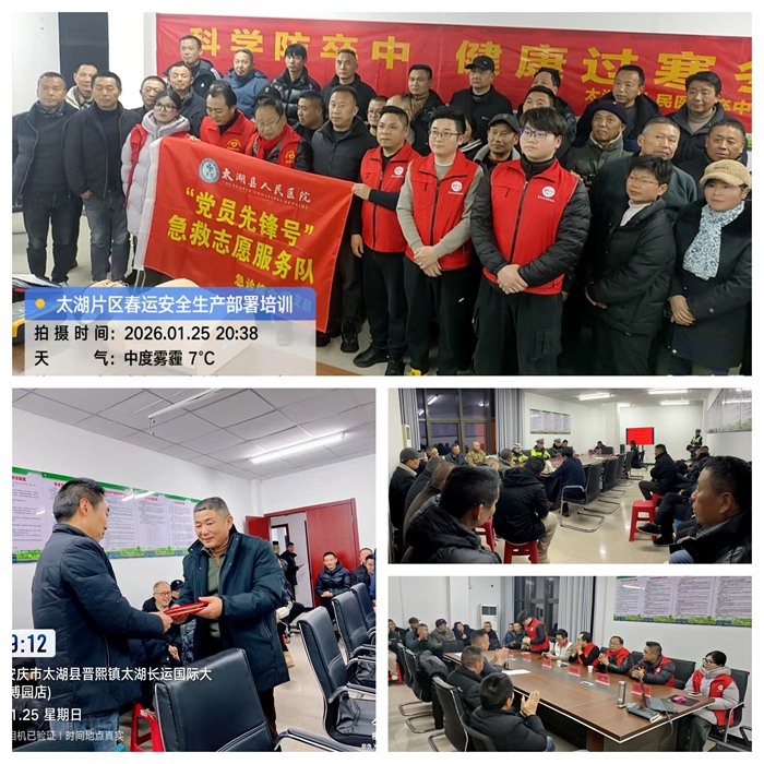 1月25日晚,太湖片區(qū)順利召開了2026年度安全生產(chǎn)暨春運春節(jié)動員部署工作會議。此次會議匯聚了太湖縣交管大隊、縣運管中心、縣人民醫(yī)院急救中心領(lǐng)導(dǎo)和專家,太湖片區(qū)領(lǐng)導(dǎo)、管理人員及全體駕駛員,共同為即將到來的春運工作做好充分準(zhǔn)備。